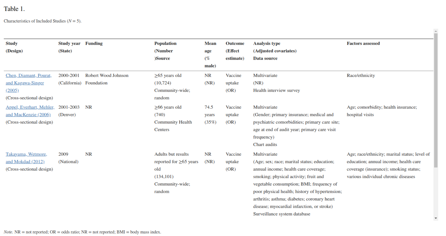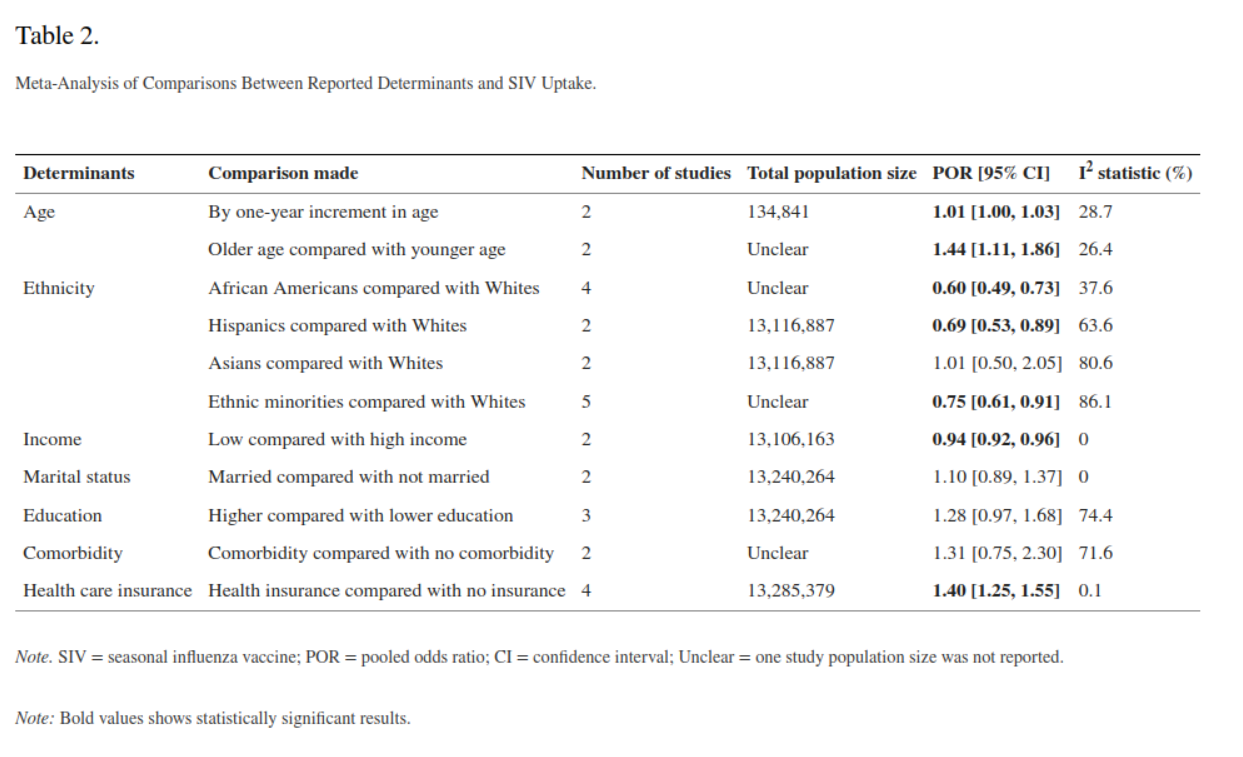 Nghiên cứu: Các yếu tố quyết định việc sử dụng vaccine cúm theo mùa ở người cao tuổi ở Hoa Kỳ: Một tổng quan hệ thống và phân tích gộp1