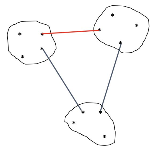 \[ D(C_k,C_{k'}) = \min_{x \in C_k,x' \in C_k'} d(x,x') \]